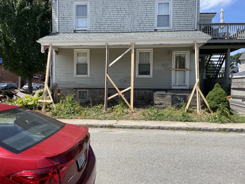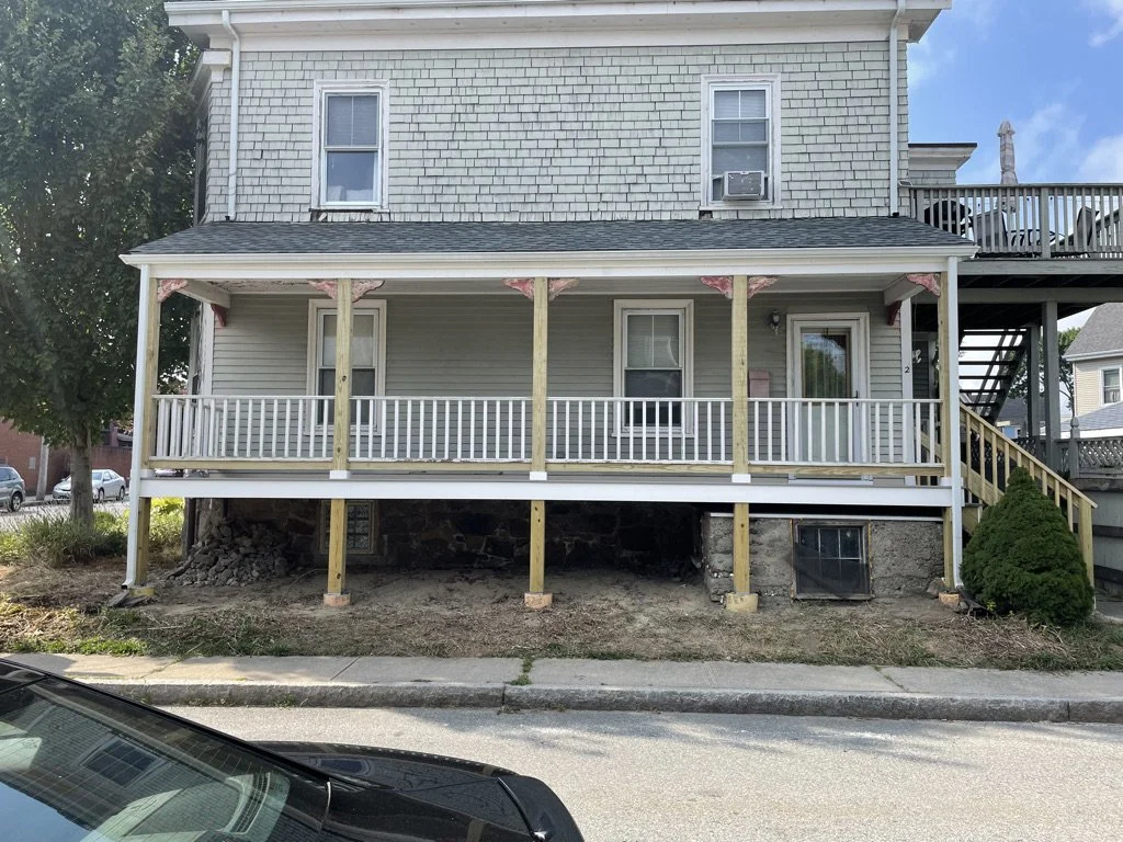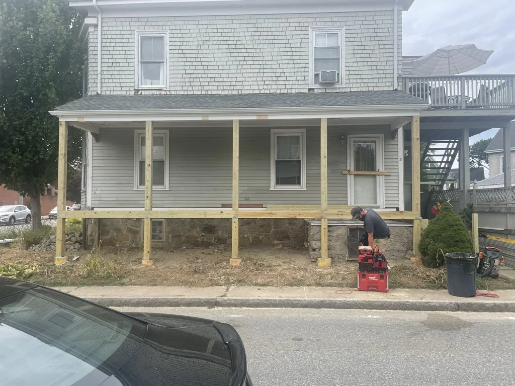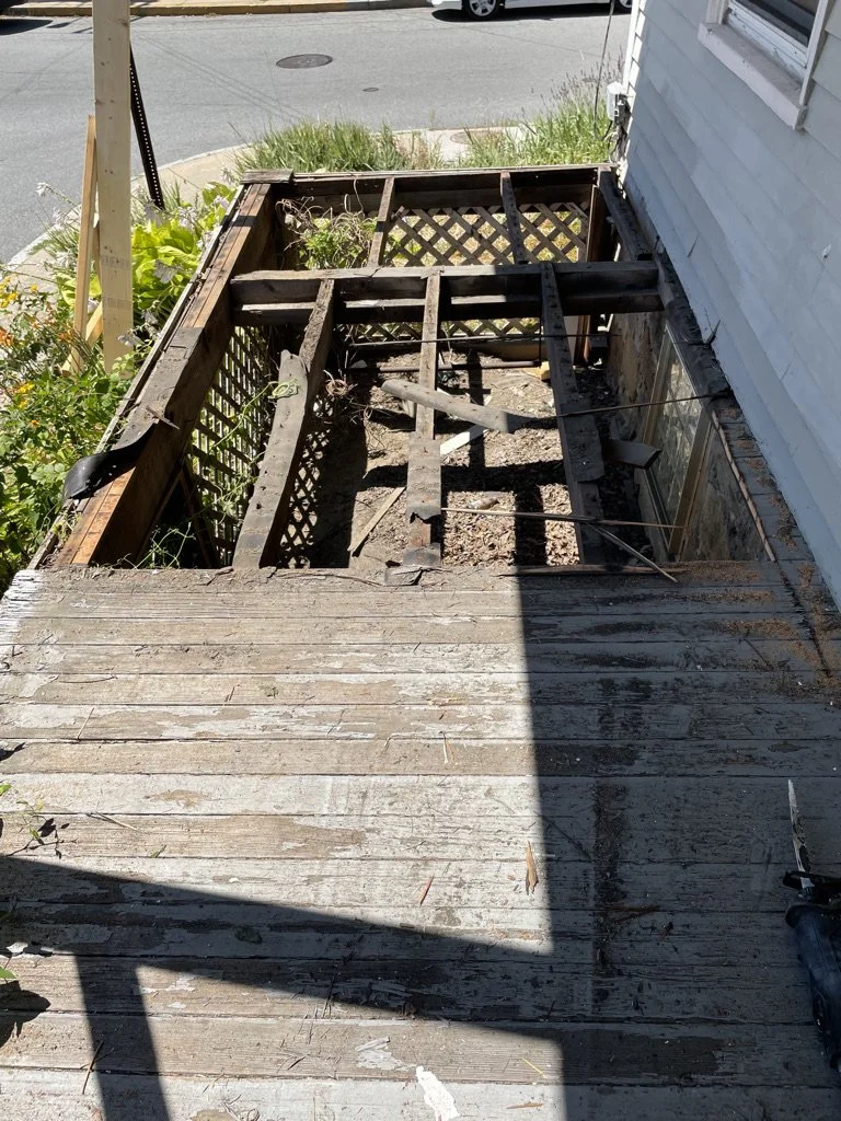Porch Restoration Dug and poured new footing Reframed porch landing and stairsAdded composite decking and trim